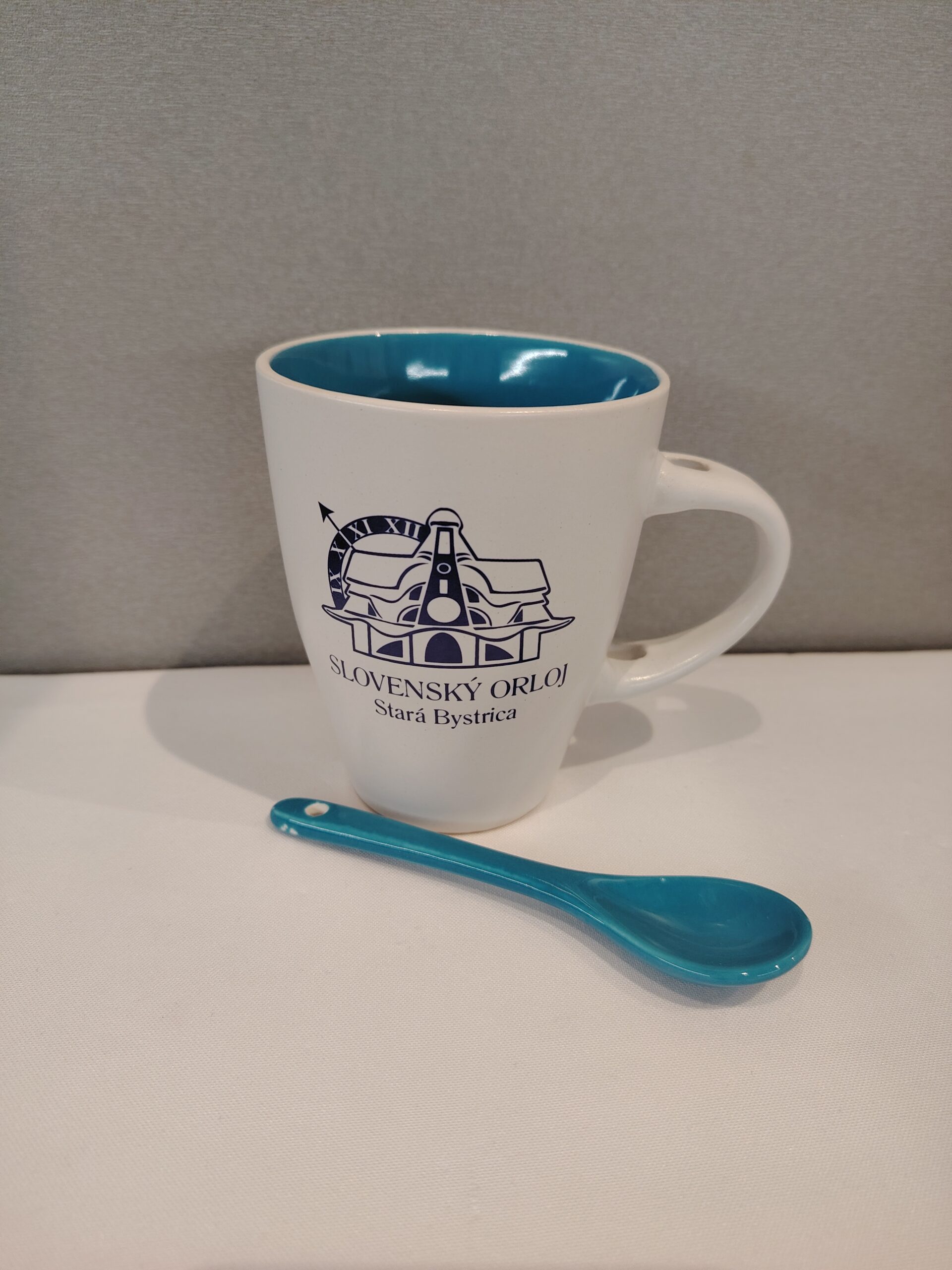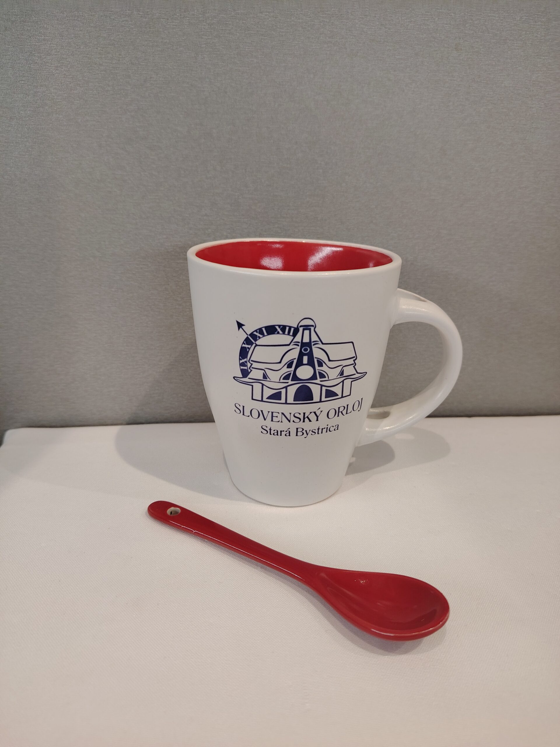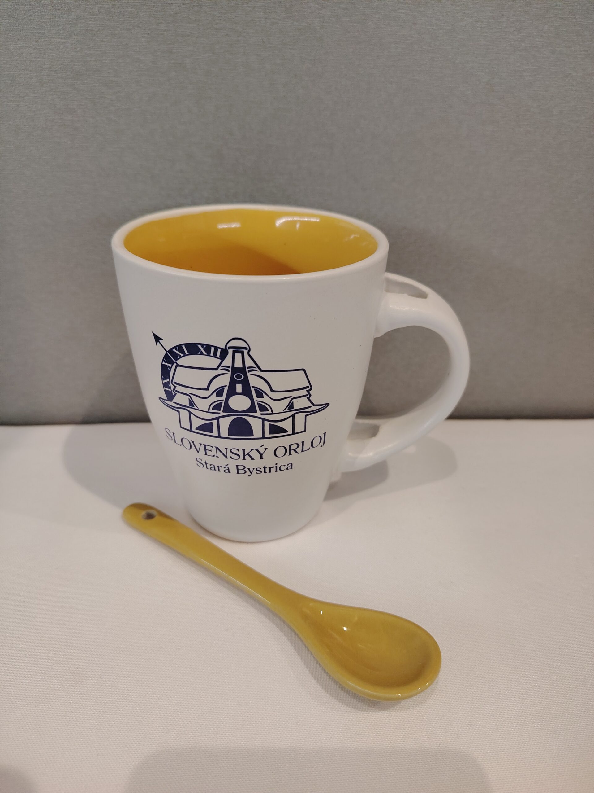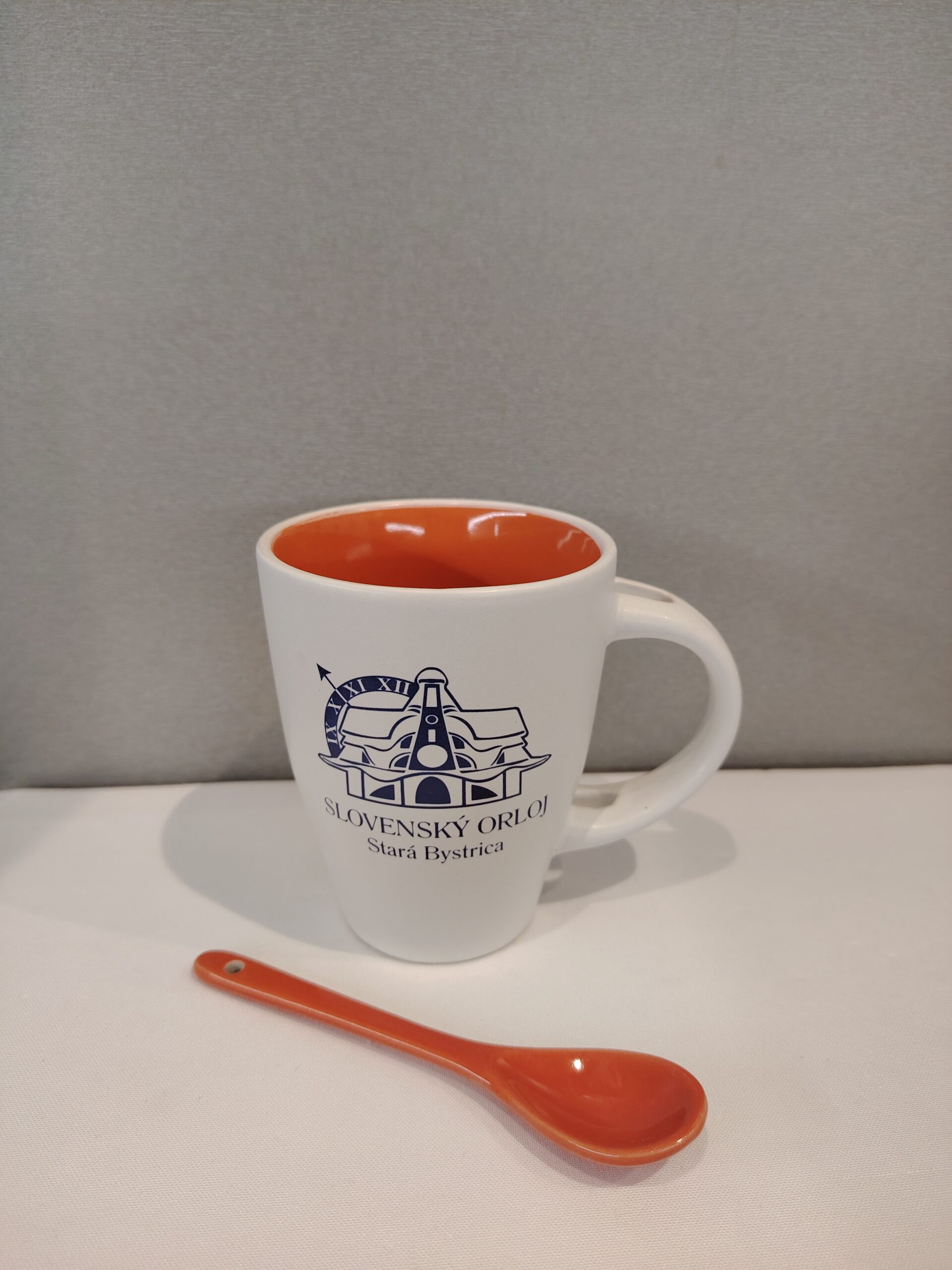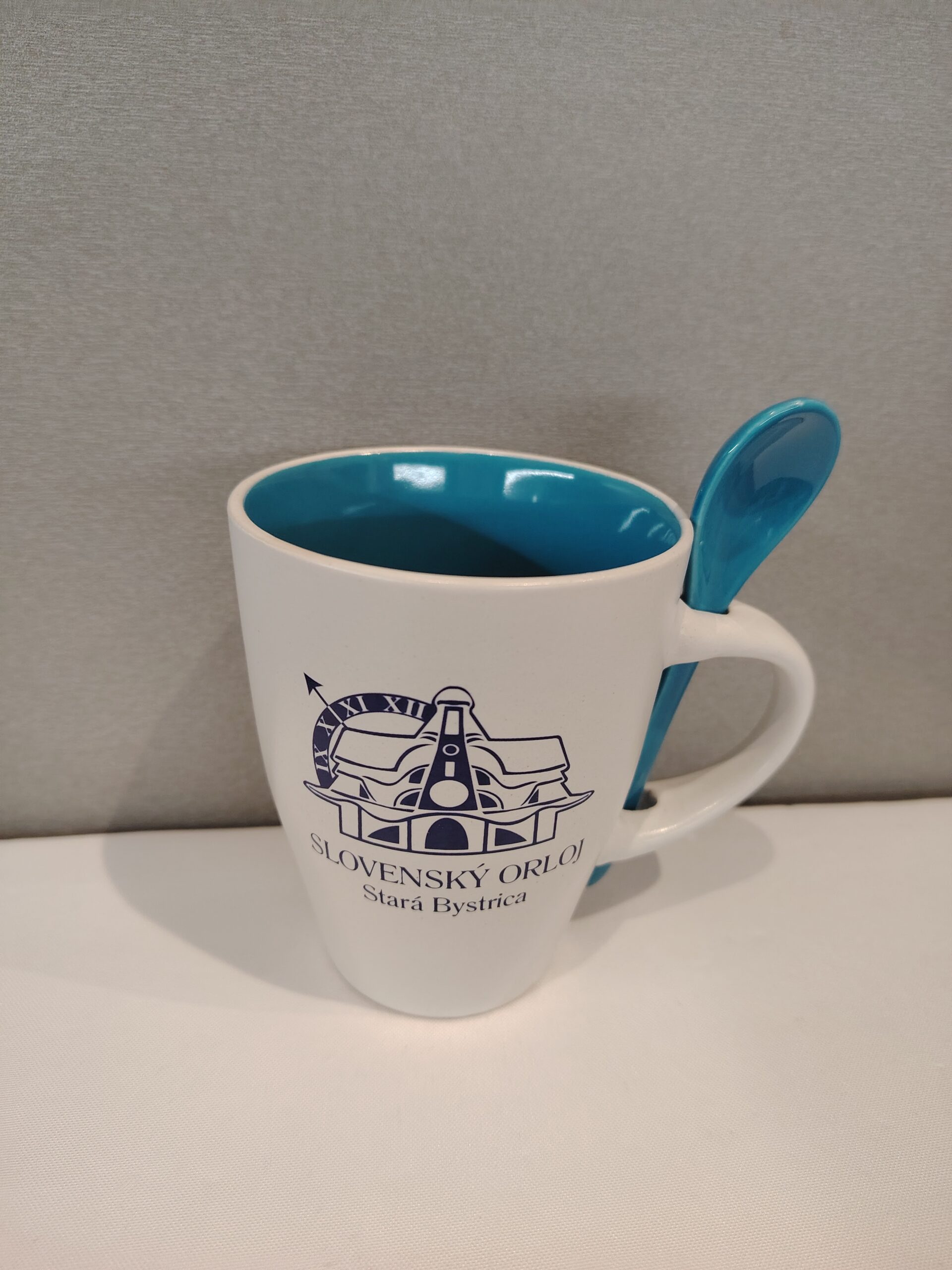 Štýlový darček vždy po ruke. Hrnček z bielej keramiky s farebným vnútrom s potlačou „Slovenský orloj, Stará Bystrica“ s farebnou lyžičkou. Odporúčame ručné umývanie, použitie v mikrovlnnej rúre je možné rovnako ako bežné keramické hrnčeky.