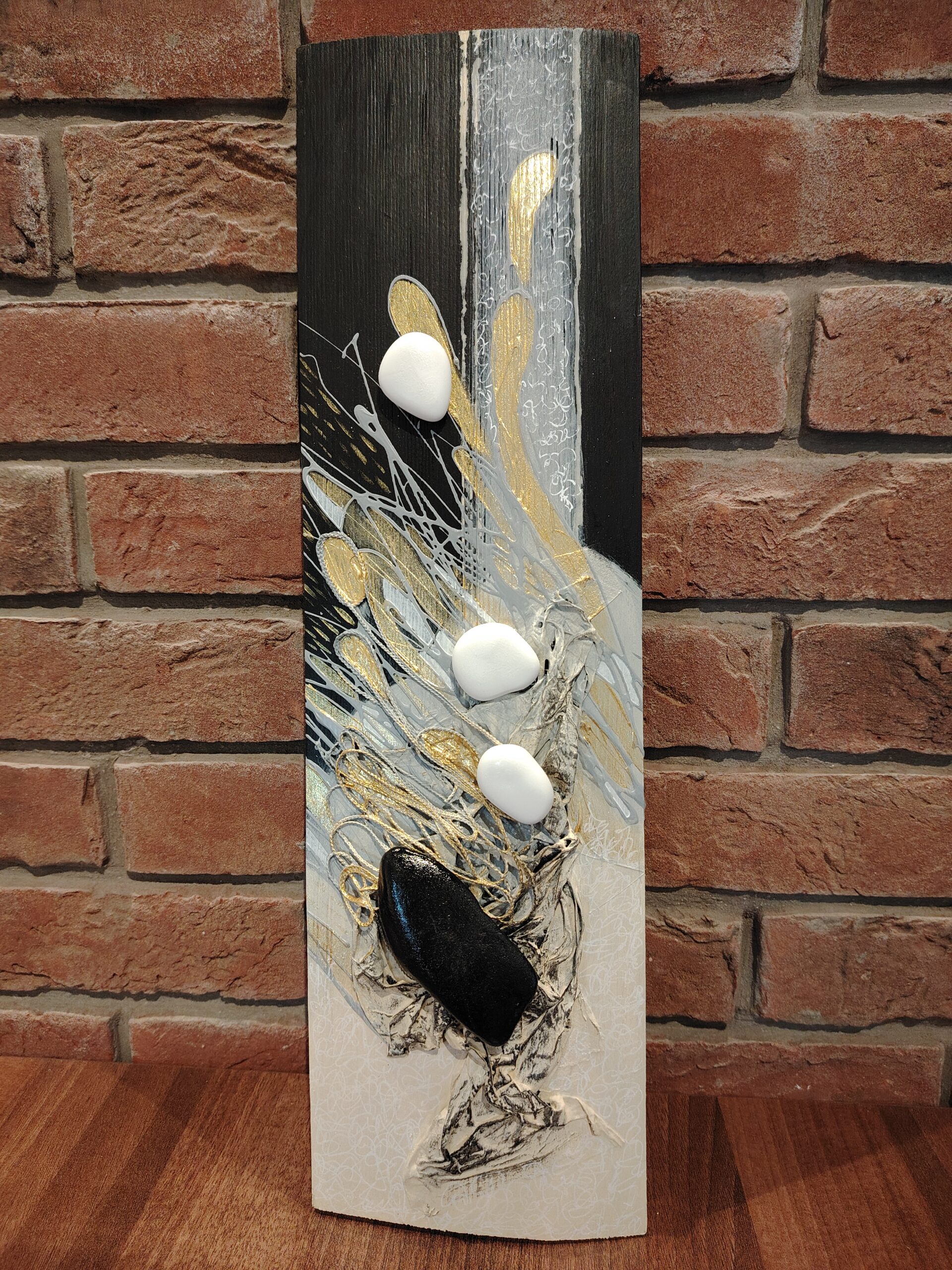 Maľba abstraktných motívov na drevené ručne štiepané šindle. Maľované akrylovými farbami. Dekoračný prvok/obraz vhodný do interiéru.